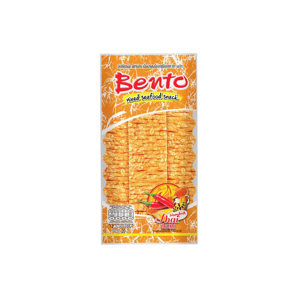 Brand: Bento Description: Mixed Seafood Snack Namprik Packaging: 36x20g Country Origin: Thailand Net Weight in KG (CU):