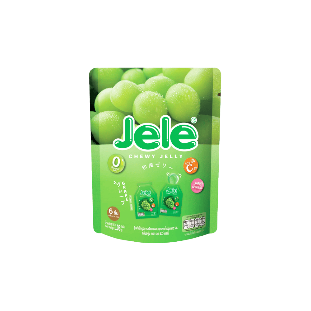 Brand: Jele Description: Chewy Jelly Grape Packaging: 24x6x18g Country Origin: Thailand Net Weight in KG (CU):