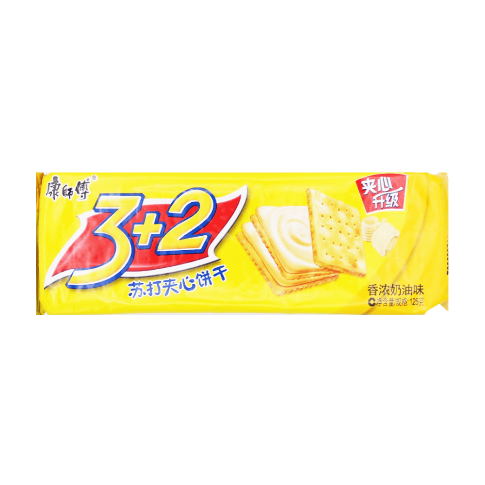 Brand: Want Want Description: 3+2 Sandwich Biscults Butter Packaging: 24x125g Country Origin: Thailand Net Weight in KG (CU):
