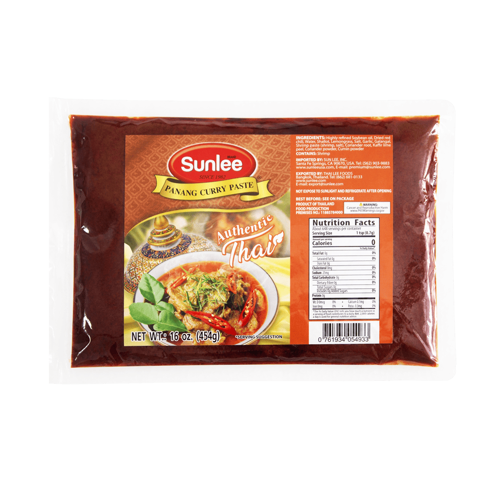 Brand: Sunlee Description: Panang Curry Paste Packaging: 20x454gram Country Origin: Thailand Net Weight in KG (CU): 454gram Barcode (CU): Gross Weight in KG (SU): Amount of SU Per Pallet: Amount of Layers Per Pallet: Pallet: