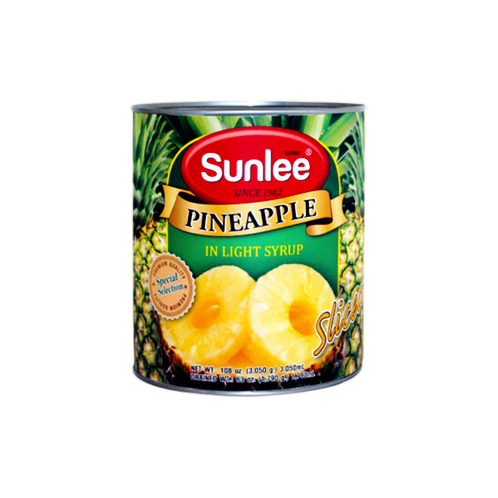 Brand: Sunlee Description: Pineapple Slices in Light Syrup Packaging: 6x3050gram Country Origin: Thailand Net Weight in KG (CU): 3050gram Barcode (CU): Gross Weight in KG (SU): Amount of SU Per Pallet: Amount of Layers Per Pallet: Pallet: