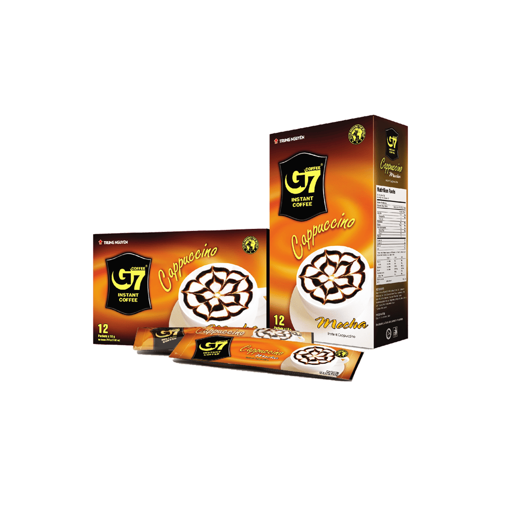 Brand: Trung Nguyen Description: Instant Capuccino Mocha G7 Packaging: 24x12x18g Country Origin: Thailand Net Weight in KG (CU):